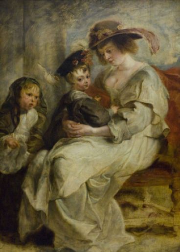 鲁本斯也会借特长把自己的家人绘画记录。下图是海伦和两个孩子,表现手法自然流畅。