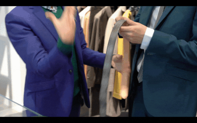 △ Sylvain展示巴黎男装高级定制店的袖扣